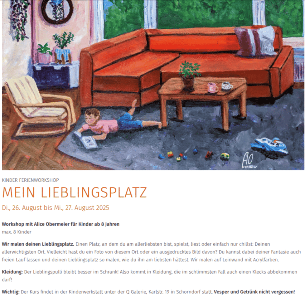 Während der Sommerferien biete ich einen Kindermalkurs im Kulturforum Schorndorf an. Es sind noch Plätze frei!