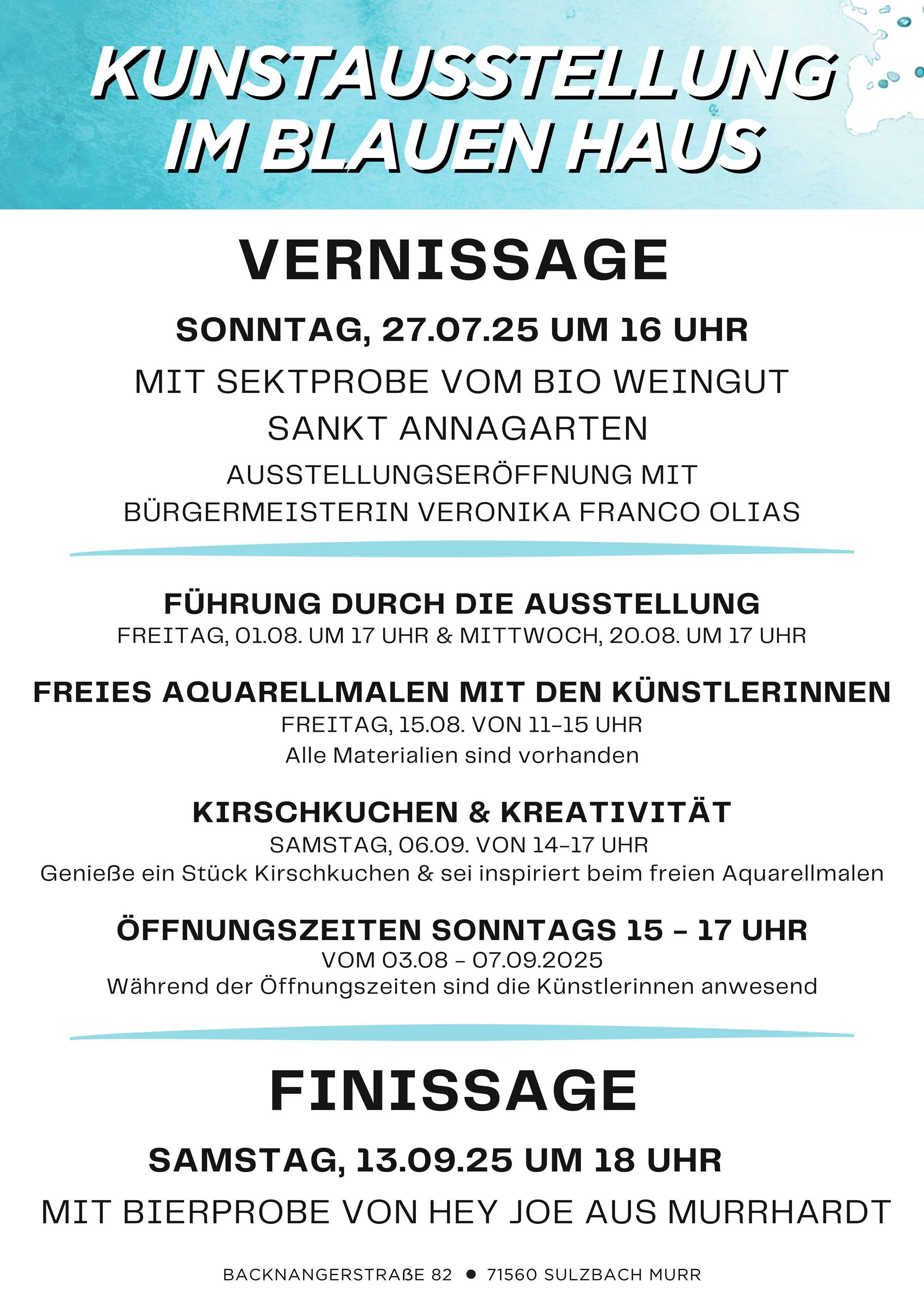 Die Ausstellung läuft bis Mitte September, also habt Ihr noch genügend Zeit vorbeizuschauen! Zum Abschluss wird der Sommer im blauen Haus mit einer Finissage am 13. September um 18 Uhr inklusive leckerem Bier von Brauerei Hey Joe beendet. 🍻
