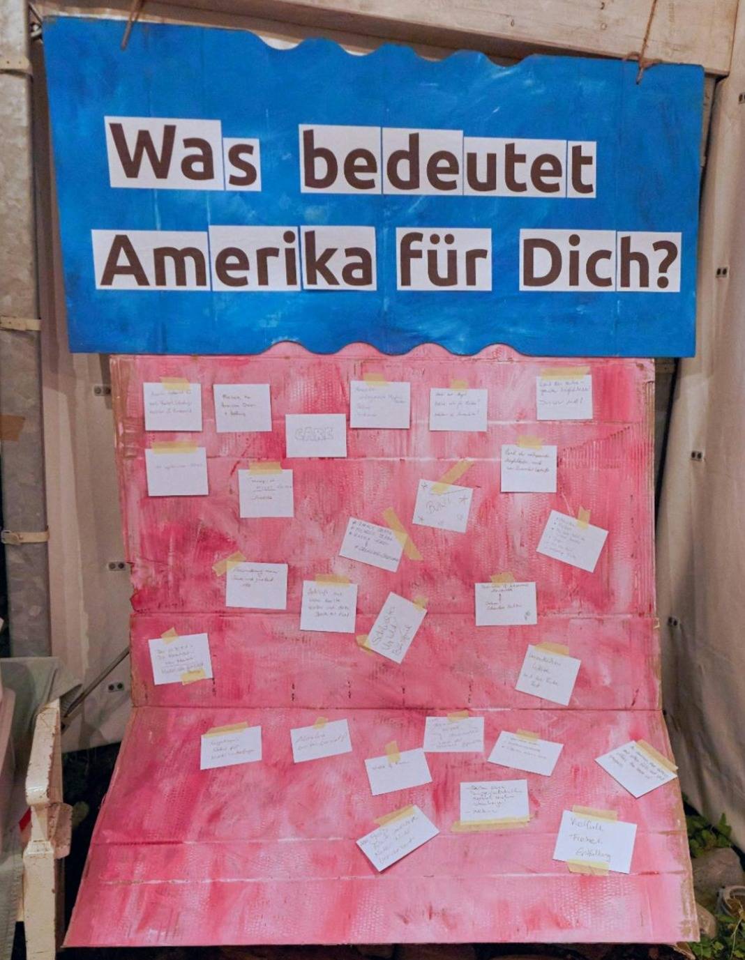 Bei der letzten Kunstnacht war ich als Gastausstellerin bei der Künstlerin Renate Busse eingeladen. Dort habe ich zum ersten Mal meine Serie “This is Amerika” präsentiert und eine interaktive Pinnwand-Aktion gestartet mit der Frage: „Was bedeutet Amerika für dich?“