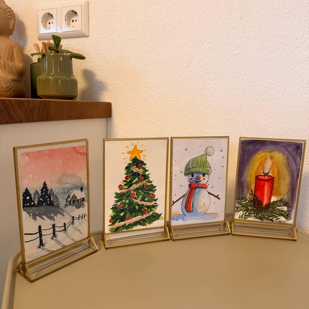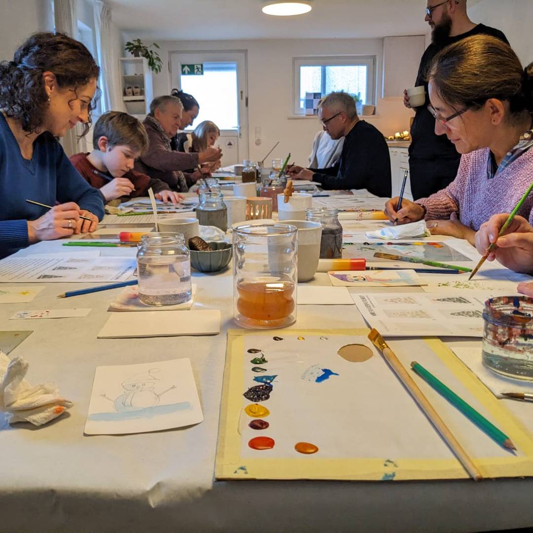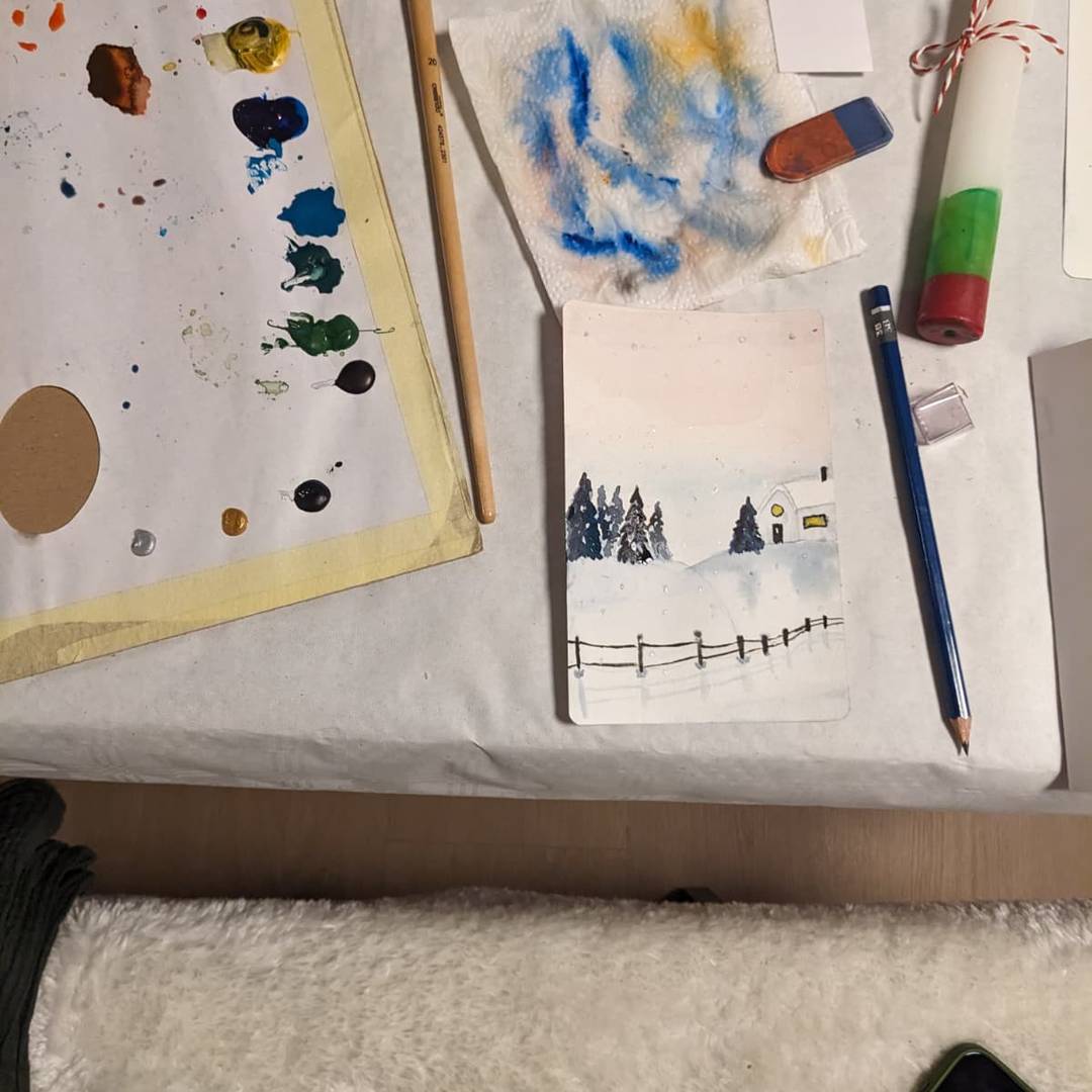 Das Winterkarten Aquarelle Workshop war ein toller und entspannter Abend mit eine nette Gruppe. Jeder hat vier schöne Motiven gemalt und könnte die Karten vor Weihnachten an Familie oder Freunde schicken. |
